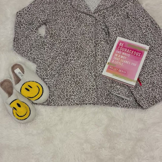 Experience comfort and style with the Elegant Leopard PJ, crafted from a soft, breathable blend of 95% polyester and 5% elastane. Featuring a button-up top and a drawstring bottom, it offers a relaxed fit that adapts comfortably to your body. The subtle white and muted gray cheetah print adds a refined yet playful touch, making it a perfect choice for lounging or restful nights. Its durable, flexible fabric ensures lasting wear while maintaining softness against the skin.