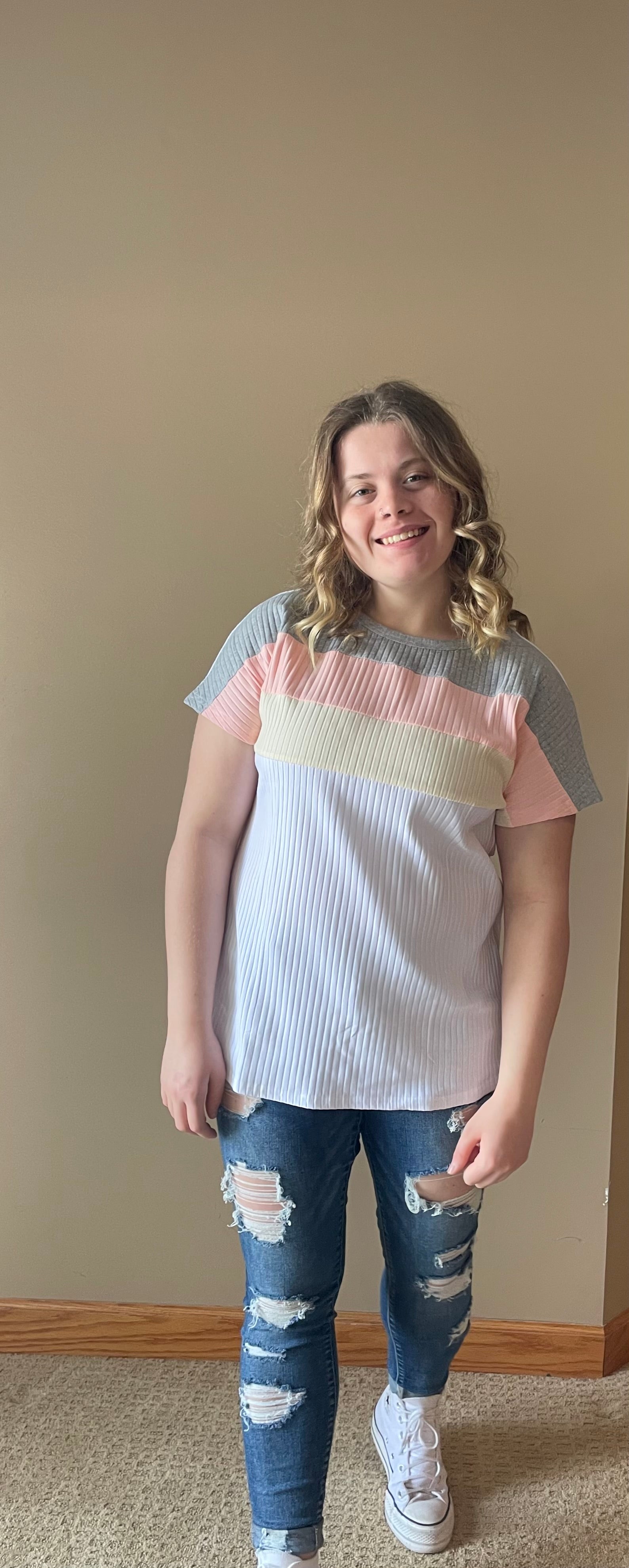 Upgrade your wardrobe with our Ribbed Color Block Patchwork T-shirt. The textured design and eye-popping colorblock make it a must-have fashion trend this year. Made with soft and comfy 95% cotton and 5% elastane, this tee is perfect for every day wear. Upgrade your style game with this popular ribbed tee.