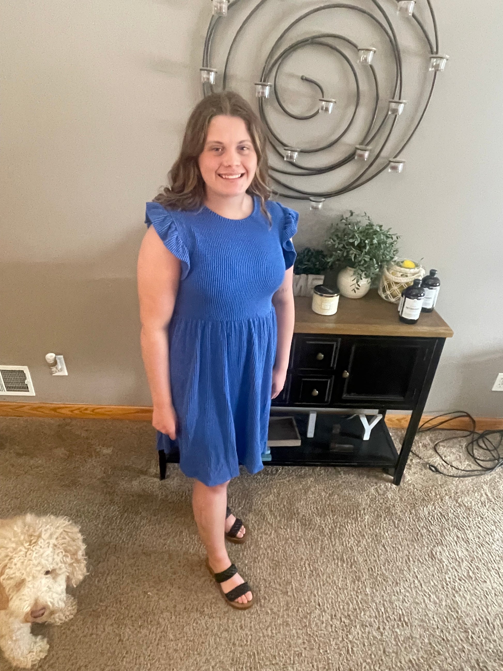 Upgrade your wardrobe with Royal Urban, featuring a royal blue flutter sleeve design and convenient side pockets. Made with a blend of 95% polyester and 5% spandex, this top offers both comfort and style. Complete with a round hem and round neck for a versatile and modern look. Perfect for any occasion!