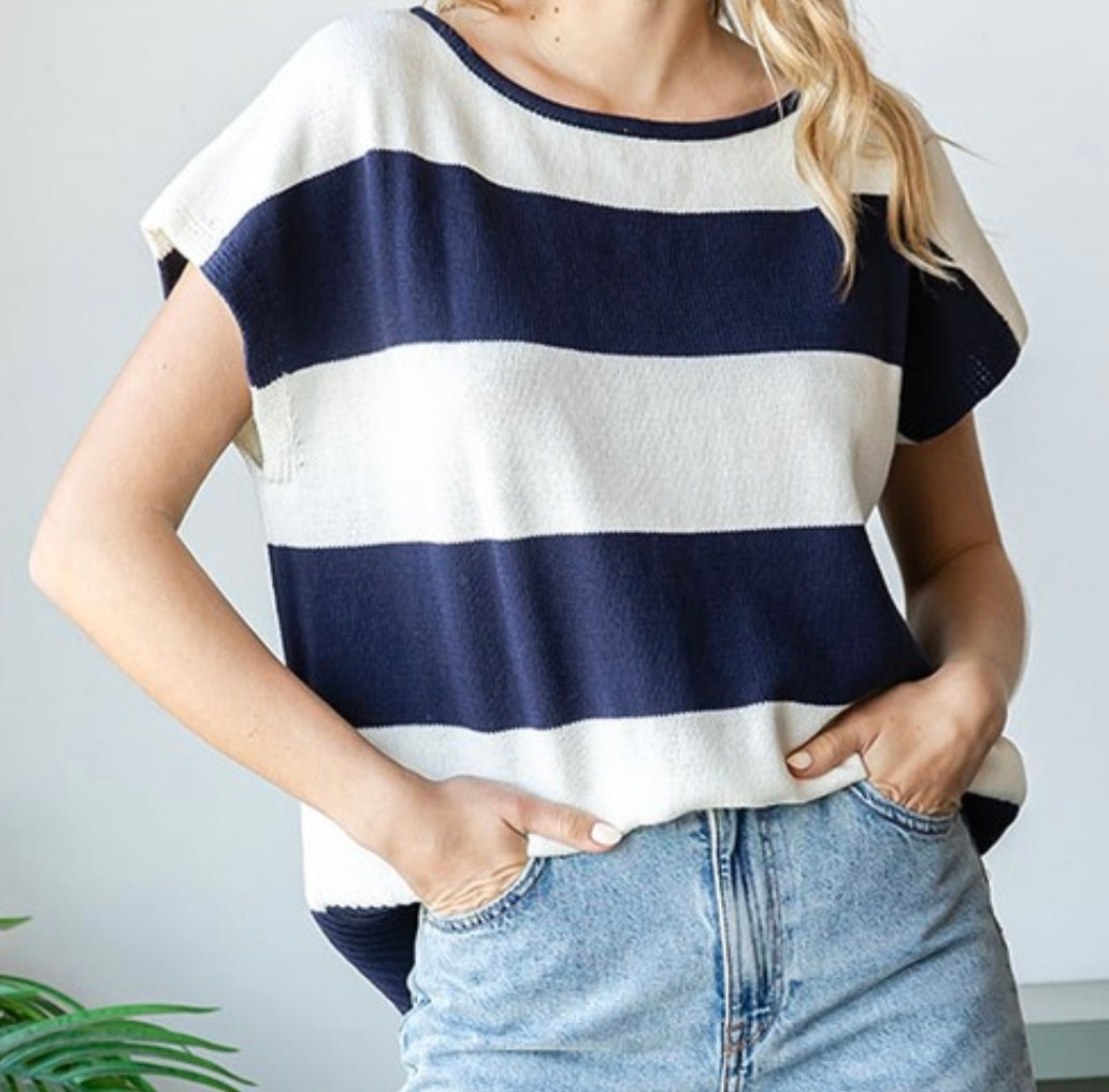 Discover style and comfort with our Strolling the Waters sweater. Made with 60% cotton and 40% acrylic, this navy striped boat neck knit features a contrast round neckline, dropped shoulder, and ribbed hemline. Perfect for a casual day out, or a stroll on the waters.